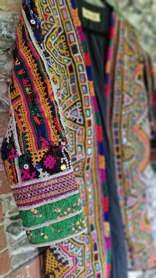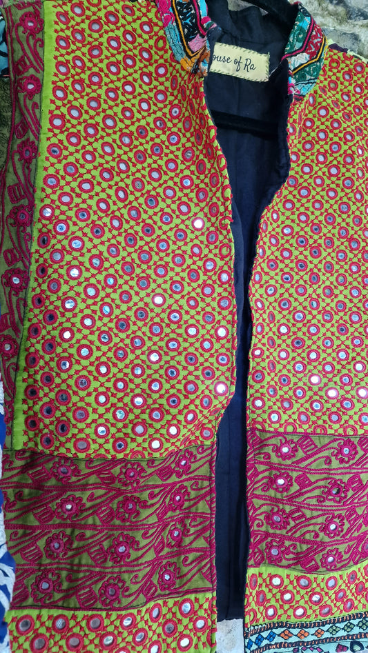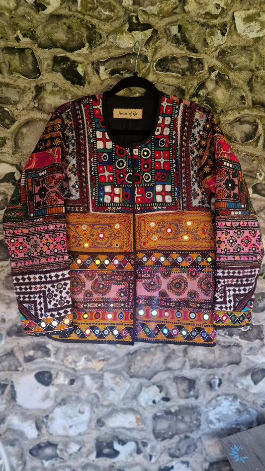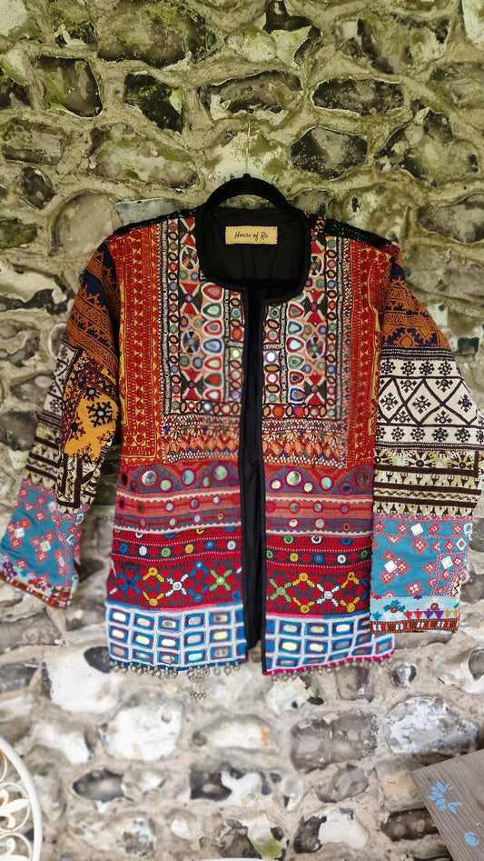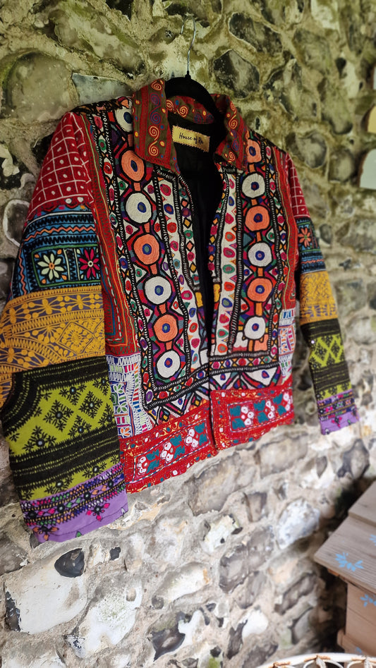 A collection of handmade Bohemian style Jackets made from recycled vintage fabrics, each piece of fabric has been cut and saved from old Indian dresses headed for landfill but given new life by sewing together in patches and creating these gorgeous culture loving, timeless pieces, every one is completely unique, showcasing wonderful hand embroidery craftmanship and mirror work. Want to be part of the sustainable tribe?