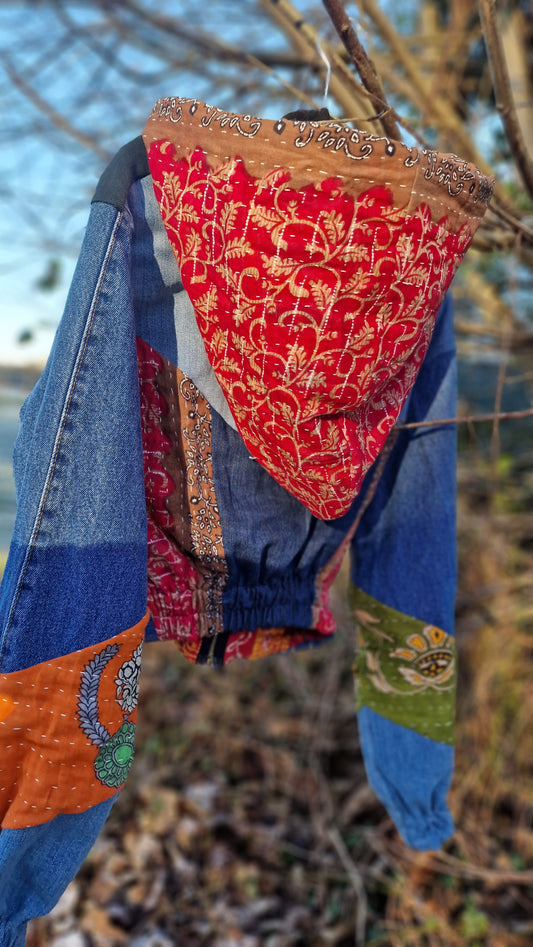 At House Of Ra, we are advocates for slow fashion, we wanted to Rebel with our circular ethos, this collection is made using entirely scrap fabrics, born from a scrap busting idea to create from waste and off cuts from pre-loved denim and other fabric projects. Keeping them in circularity and out of landfill.